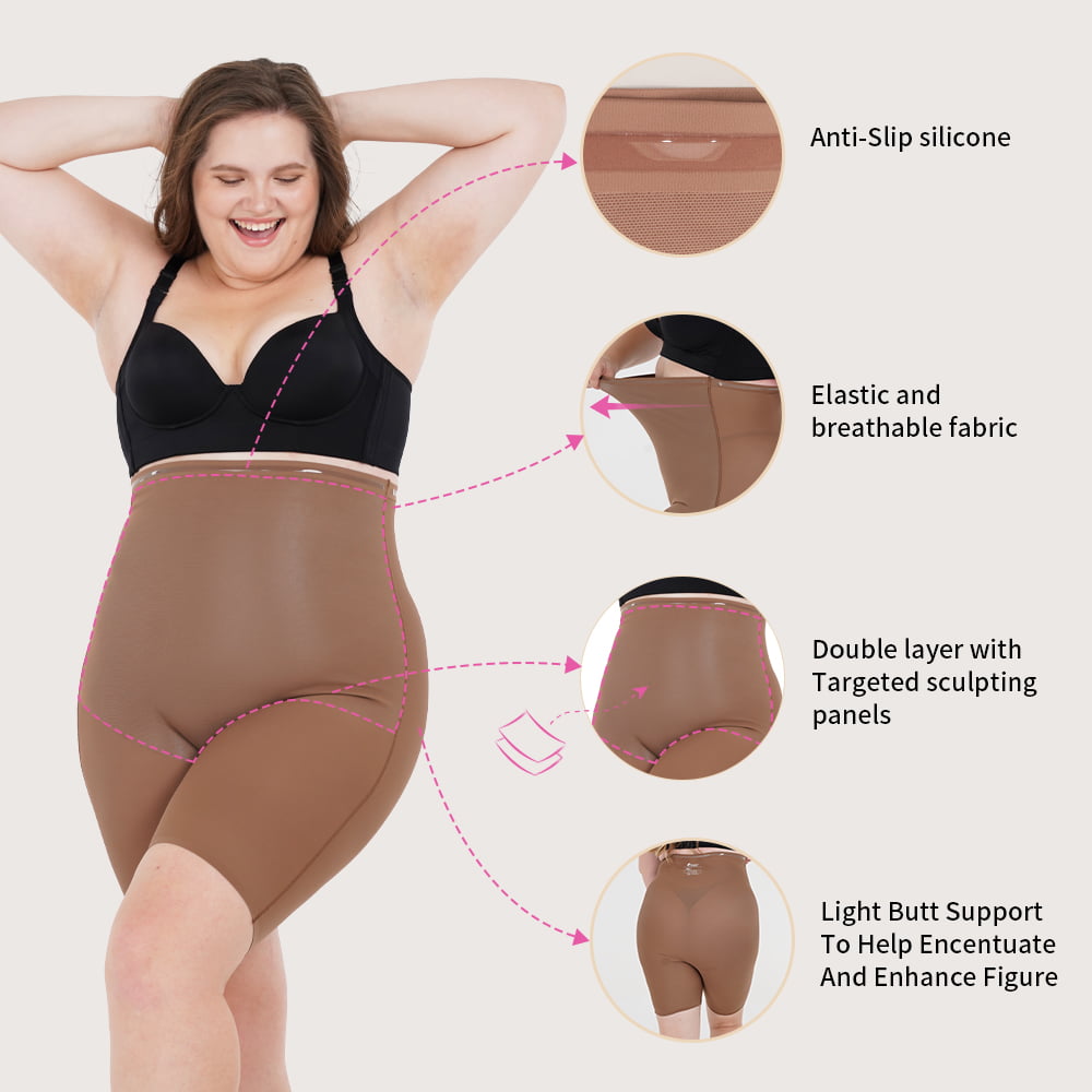 Our shapewear is crafted with lightweight, breathable fabrics that hug your curves without restricting them — made to support your day, not control it.